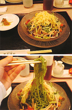 やはり麺は緑色でしたね。そしておいしかった。