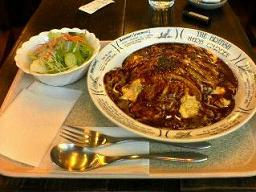 今回はオムライスにサラダをつけて頼んでみたら、デミグラスソースのたっぷりかかったオムライスが出てきました。