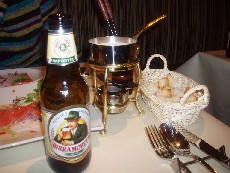 本日、ラーメン道はワインではなくイタリアのビールを注文してみました。→