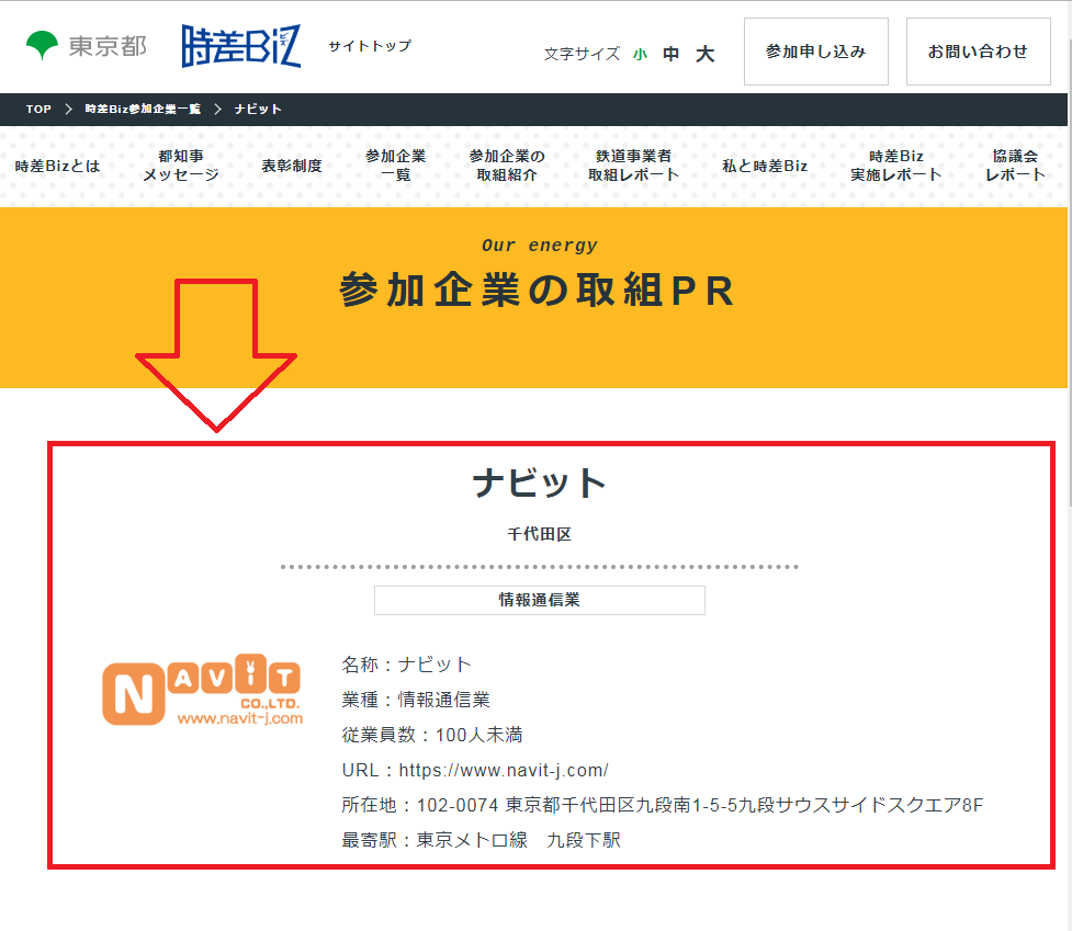 当社ナビットでは、東京都が推奨している「時差Biz」運動に参加し、