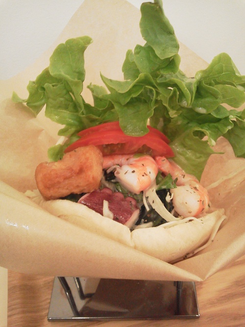 ピタパンの お店なのですが、 とってもヘルシー! 野菜たっぷりで 食べごたえも ばっちりです。