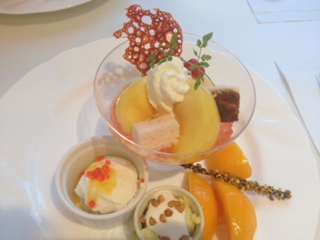 注文したのは、黄桃と白桃の組み合わせのプレート!!