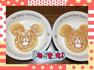 先日、ホットケーキを作りました。 なんとミッキーとミニー♪