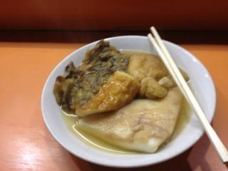 フォアグラを出す屋台とか、イタリアン屋台とか、ガイドブックには色々載っていたのですが、花金ということで、どこも一杯だったため、シンプルにおでんとラーメンの屋台に入りました。