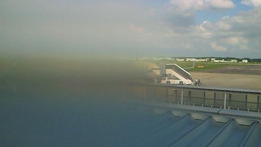 空港内の2Fのベランダのようなところから、飛行機の着陸場所を眺めることができるのですが、特殊なガラスで左側が見えないようになっています。