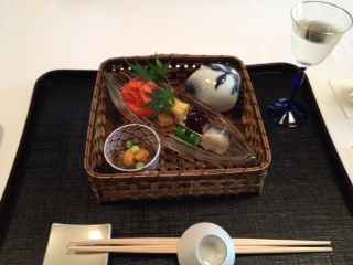 ここで、色とりどりの前菜が出されますが、シーズンよりずいぶん早いですが、松茸が出されました。