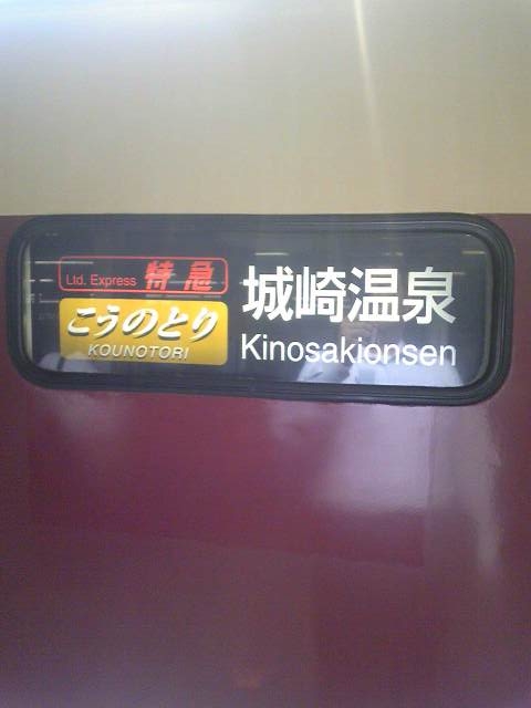 特急の名前に「こうのとり」がついており城崎温泉との関連を調べてみたら?