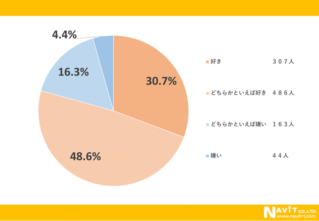つけ麺は好きですか?というアンケートに対して「好き」と回答された人が30.7%と約1/3という結果になりました。「どちらかというと好き」の48.6%と合わせると、約80%の人がつけ麺が好きだと回答しています。