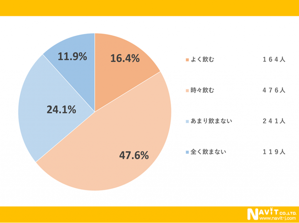即席味噌汁を飲みますか?というアンケートに対して「よく飲む」という人が16.4%で「時々飲む」という人が47.6%で合計で60%以上の人が即席味噌汁を飲むということがわかりました。ちなみに筆者は即席味噌汁をかなり飲みます。