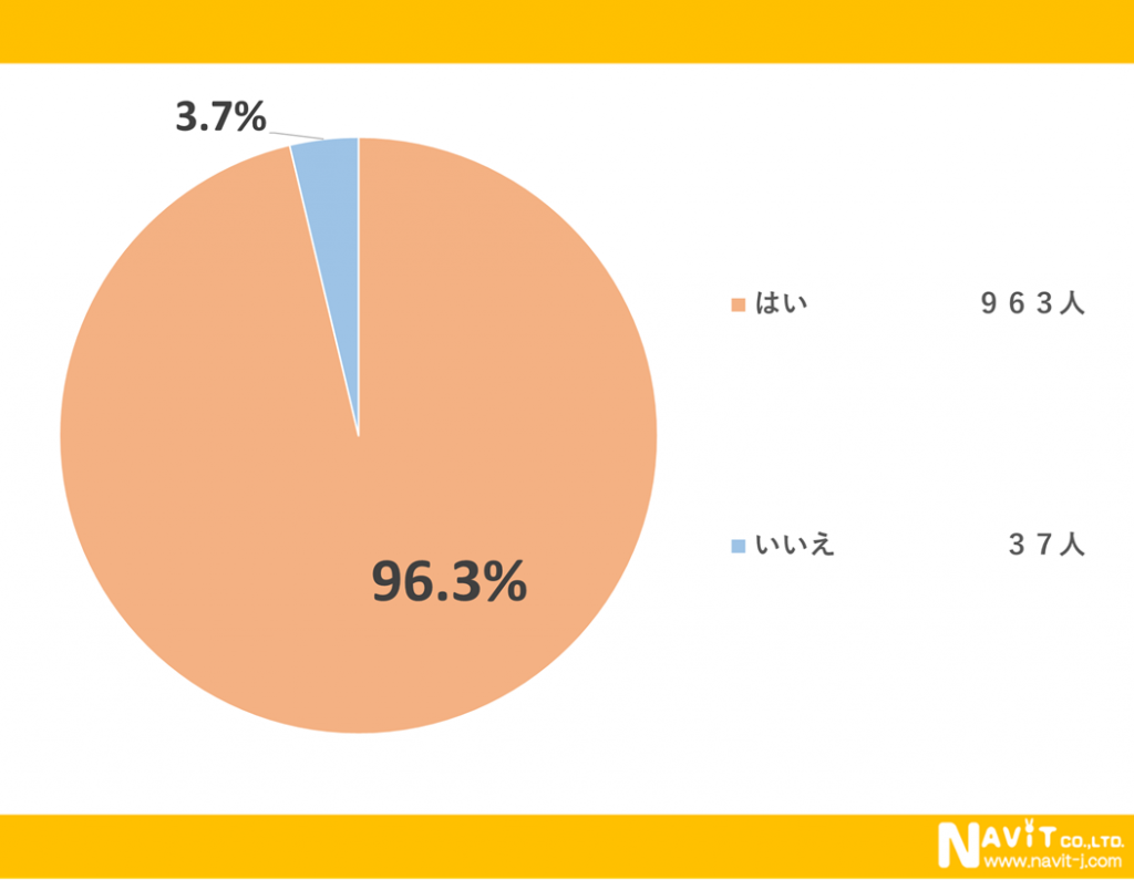 冬物のアウターを持っているかというアンケートに対して「はい」と回答された人が96.3%で「いいえ」と回答された人が3.7%という結果になりました。