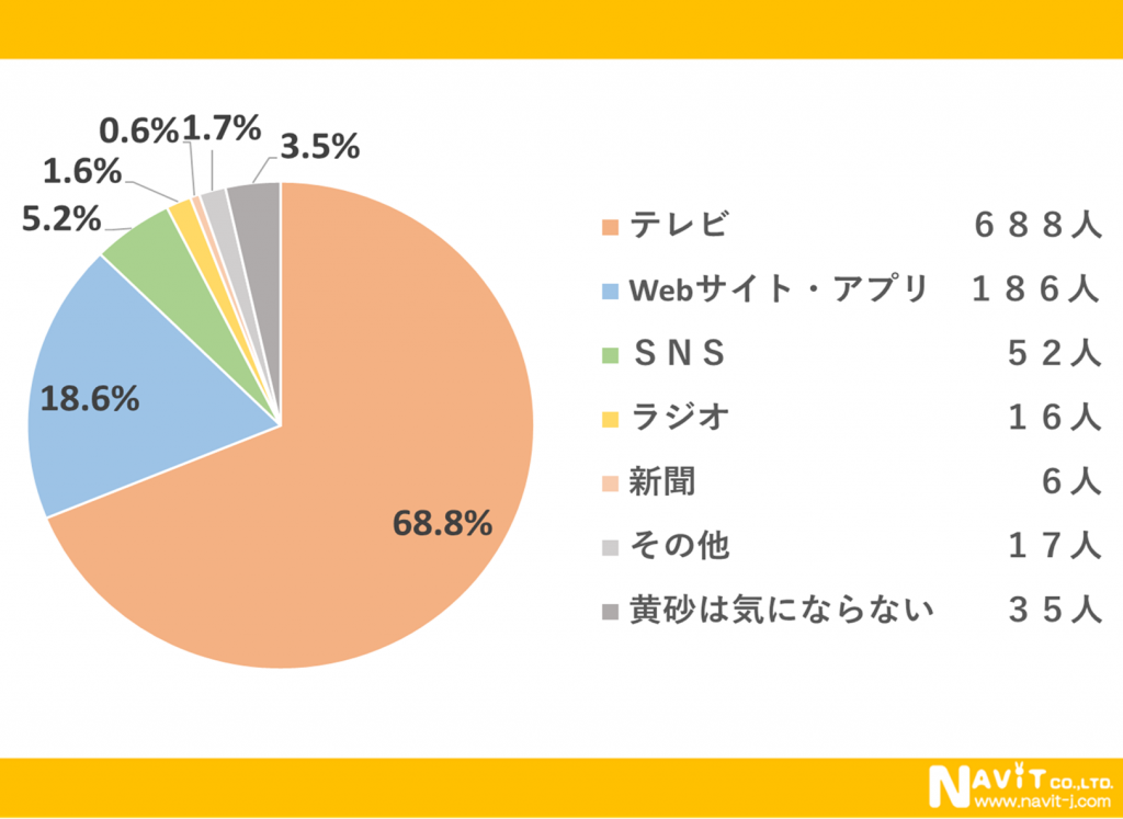 黄砂の情報は「テレビ」からが最多