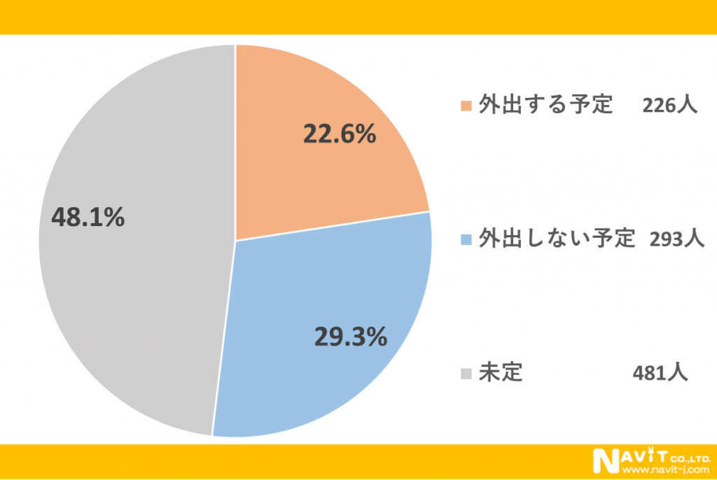 「今年のゴールデンウィークに外出する予定はありますか?」という質問については、「外出する予定」が22.6%、「外出しない予定」が29.3%、「未定」が48.1%という順になりました。