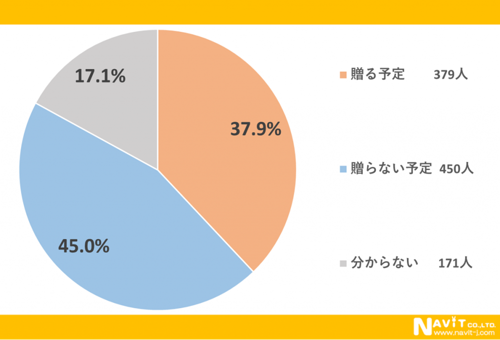 「今年の母の日、5月10日(日)にプレゼントを贈りますか?」という質問については、「贈る予定」が37.9%、「贈らない予定」が45.0%と、贈らない予定の人が上回る結果となりました。