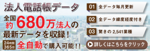 法人電話帳データは、全国電話加入法人、約680万件の住所、郵便番号、電話番号、緯度経度などの各種の最新の情報を収録しています。