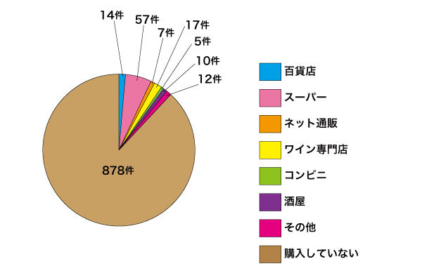 ボジョレ・ヌーボの購入元としてはスーパー、ワイン専門店、百貨店などの実店舗が主にあがりました。