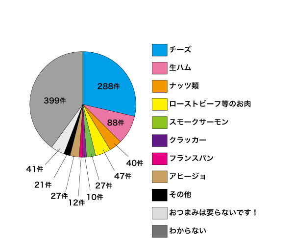 そのほか定番のクラッカーやフランスパンのほか、近年お酒のお供として人気定番の「アヒージョ」と答えた方もいらっしゃいました。