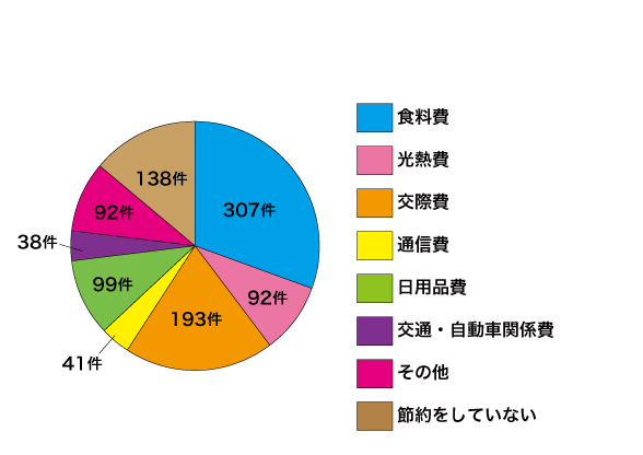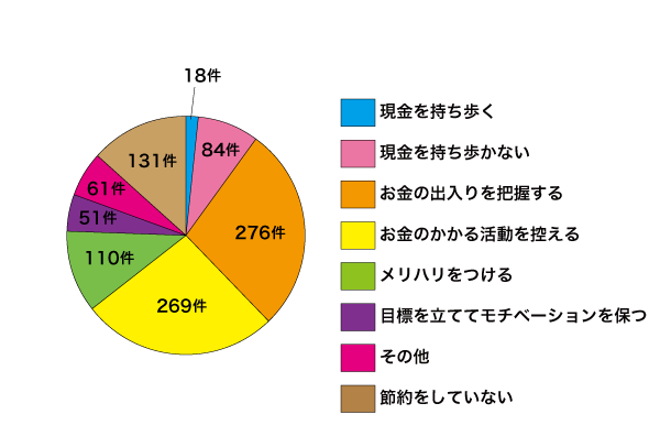 節約で心掛けている事について多かった回答は「お金の出入りを把握する」「お金のかかる活動を控える」でした。