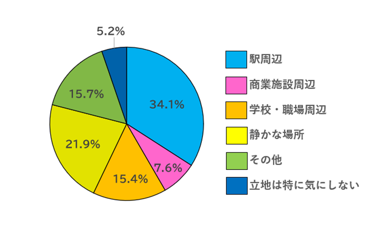一番回答が多かった「駅の周辺」の次に多いのが「静かな場所」という結果となりました。