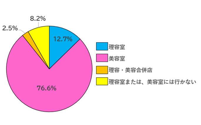 理容室より「美容室」を選ぶ方が多く、全体の76.6%という結果