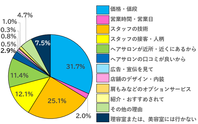 ヘアサロンは「価格・値段」で選ぶ方が最も多く、次いで「スタッフの技術」