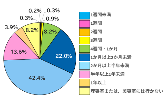 ヘアサロンに行く方の約7割が半年までに1度、約9割が1年経過するまでに1度は行っているという結果になりました。