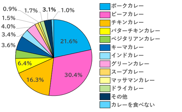 最も好きなカレーの1位は「ビーフカレー」、2位「ポークカレー」