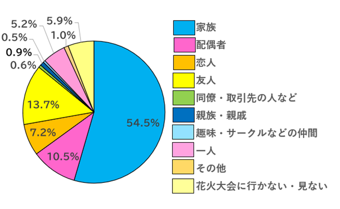 花火大会は「家族」と見る方が54.5%で半数以上