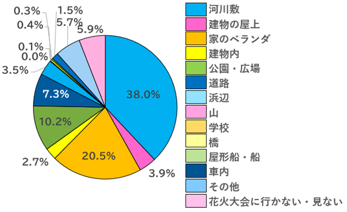 花火大会を見る場所は「河川敷」が一番多く、次は「家のベランダ」