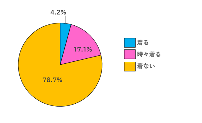 「着る」「時々着る」と回答した方が約2割に対して、「着ない」と回答した方が約8割という結果になり、多くの方が浴衣や甚平は着ないようです。