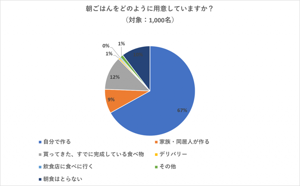 朝ごはんは、自分で用意する人が67%