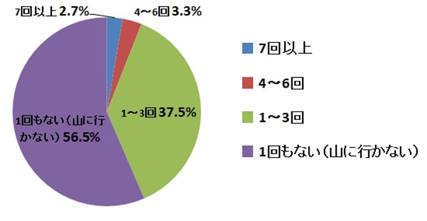 山に出かける回数は1年あたり「1~3回」が最も多くて、全体の37.5%。「山に行かない」人が半数を超えるのは、設問1の「海派」の比率とほぼ一致しています。