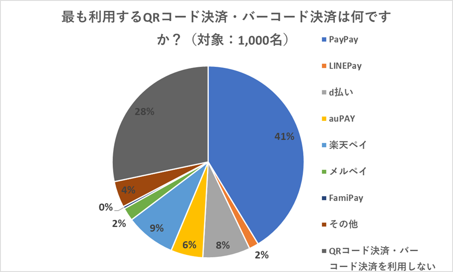 最も利用するQRコード決済・バーコード決済、4割が「PayPay」