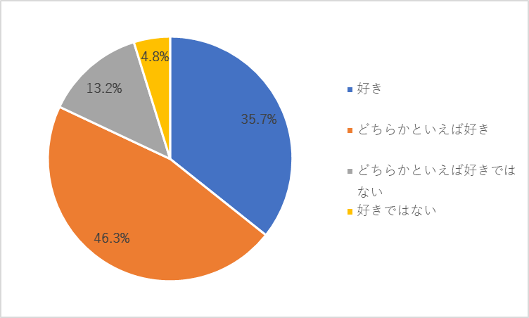 カップ麺が「好き」と回答した人は35.7%、「どちらかといえば好き」と回答した人は46.3%で、合わせると82%の人がカップ麺を好きだということが分かりました