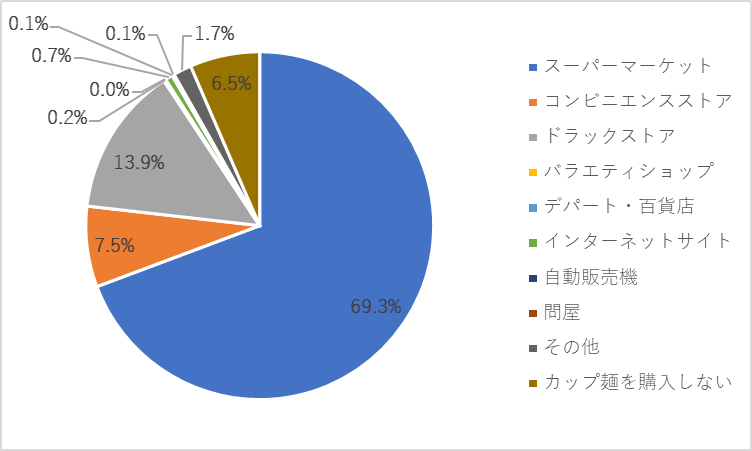 カップ麺を購入する場所は、スーパーマーケットが最多