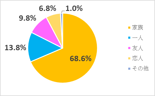 誰と見に行きますか?という質問に「家族」と回答した人が68.6%、「一人」が13.8%、「友人」が9.8%、「恋人」が6.8%という結果になりました。