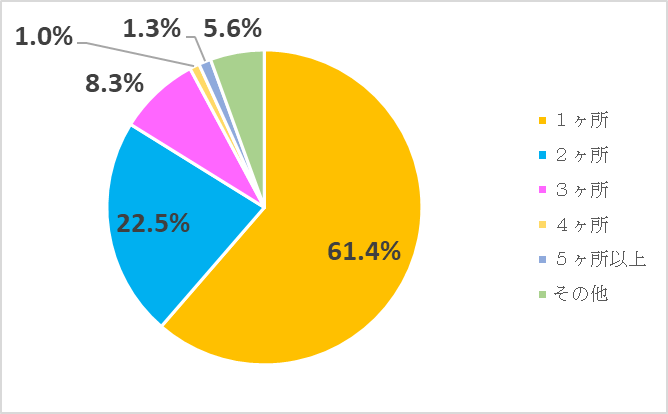 何ヶ所見に行きますか?という質問に「1ヶ所」61.4%、「2ヶ所」22.5%、「3ヶ所」8.3%「4ヶ所」1.0%、「5ヶ所以上」1.3%という結果になりました。