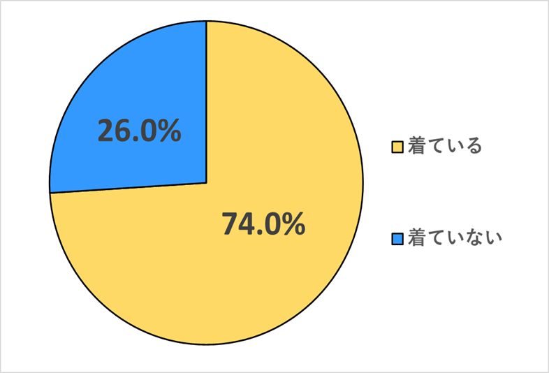 上記質問に対して、「着ている」と回答した方が74.0%で一番多いことがわかりました。4人に3人以上の方が発熱・保温インナーを活用しているようです。