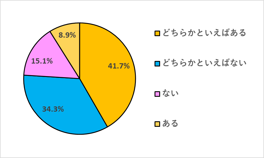 流行りものに興味があるかどうかについては、「どちらかといえばある」が41.7%、「どちらかといえばない」が34.3%、「ない」15.1%、「ある」8.9%となり、「どちらかといえばある」と「ある」の回答を合わせるとほぼ半数の人が、興味があることが分かりました。