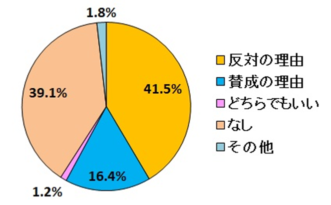 フリー解答を理由の内容から判断して「反対」「賛成」「どちらでもいい」に分けてみた結果が上記のグラフです。