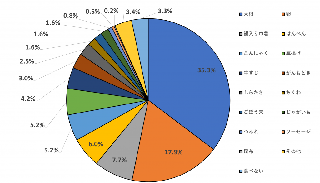 好きな具材で最も多いのは「大根」で、全体の35.3%。「卵」が2位で、17.9%。