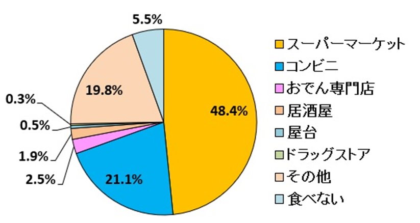 おでんを買うのは「スーパーマーケット」がほぼ半数