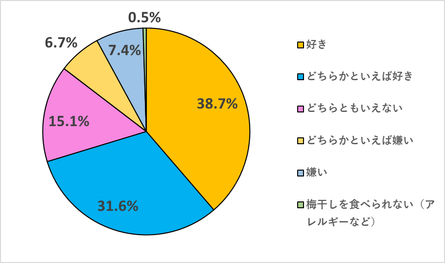 好き・どちらかといえば好きと回答した方を合わせると約7割の人が梅干しを好きという結果になりました。