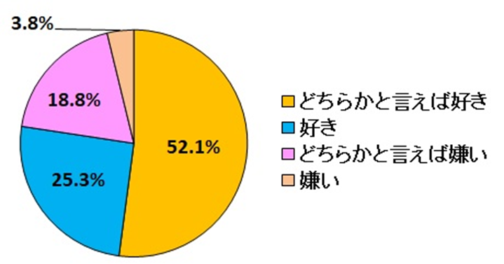 「どちらかと言えば好き」が52.1%と過半数を占めました。「好き」(25.3%)を加えると77.4%になります。「嫌い」は3.8%にとどまっており、インスタント食品が私たちの食生活に根付いていることがうかがえます。