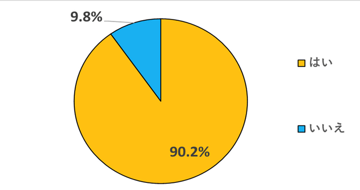 旅行先でお土産を購入しますか?という質問に対し、「はい」と回答した方は90.2%、「いいえ」と回答した方は9.8%となりました。圧倒的にお土産を買う人が多く、約9割の方がお土産を買うと回答しています。
