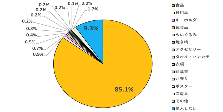 どのようなお土産を購入することが多いですか?という質問に対し、最も多かったのは「食品」で85.1%、他の選択肢については、1.0%内におさまっています。個包装になっているお菓子のようなものであれば、会社の同僚に分けるのにちょうどいいアイテムとして人気があるのでしょう。またご近所の方や親しい知人、友人に対しては食品の中でも特別感の出るものを送るのでしょうね。