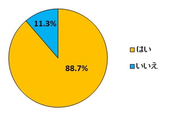 洗濯をすると答えた人が88.9%、洗濯しないと答えた人が11.3%でした。洗濯物を自分で洗濯する人は回答者の9割近くを占めました。