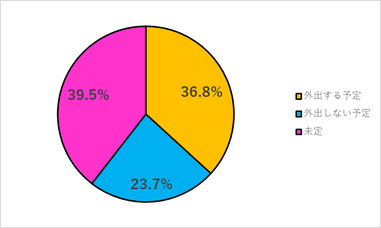 「今年のGWは外出する予定はありますか?」の質問については、「外出する予定」が36.8%、「外出しない予定」が23.7%という結果となりました。 「未定」の人も39.5%いますので、まだまだ外出する人は増えそうです。