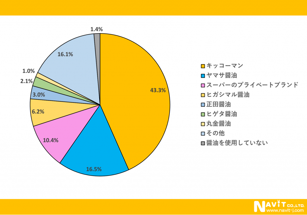 現在使用している醤油は、「キッコーマン」が最多