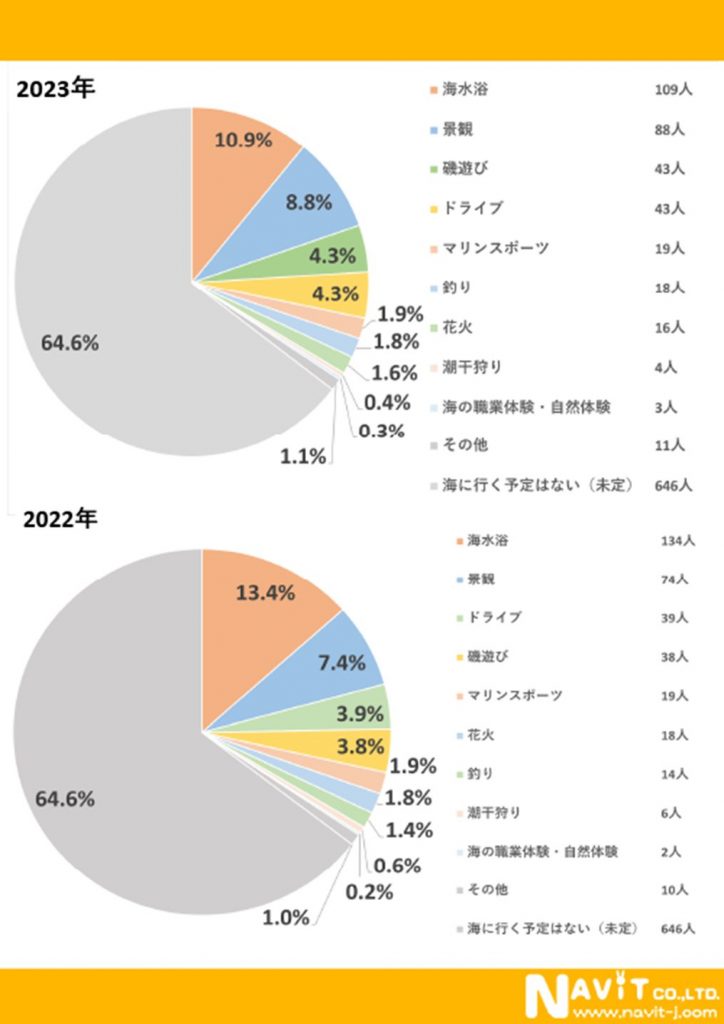 ナビットでは、全国の主婦を中心としたモニター会員1000人を対象に「今夏の海旅行について」アンケートを実施しました。前年の実施した同アンケートの結果と比較しながら見てみましょう。