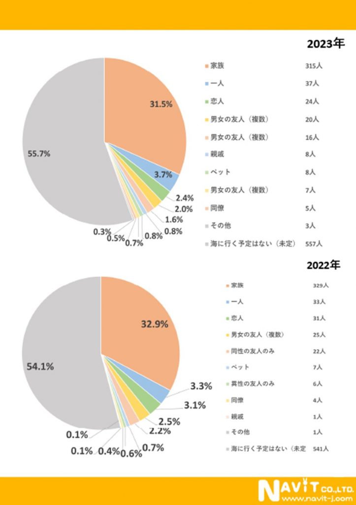 今年の夏も、海に行く相手は「家族」と回答した方が一番多い
